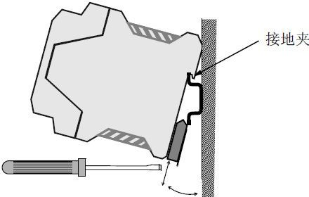 GCAN-GT-413模塊安裝方法如圖所示,可使用一字螺絲刀輔助將模塊安裝到DIN導軌上。