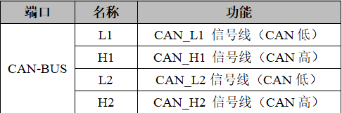 GCAN-GT-413模塊CAN-bus接口由1個4 Pin接線端子引出,有2個獨立的CAN接口,其接口定義如表所示。