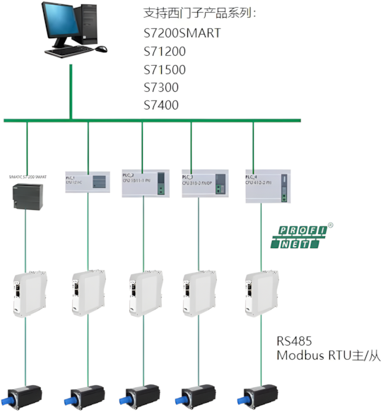 GCAN-GT-8311-MRTUS,西門子PLC可以通過8311網(wǎng)關(guān),與Modbus RTU主站進行通訊;西門子PLC的Profinet接口連接8311的Profinet接口,8311的RS485接口連接Modbus RTU主站的RS485接口。
