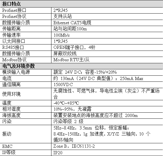 ● Profinet總線傳輸距離(站與站間距):100m(CAT5線纜);