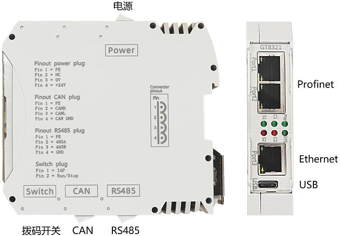 GCAN-GT-8321 Profinet網(wǎng)關(guān)外觀圖