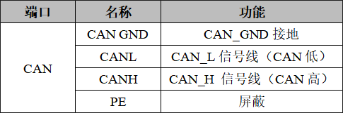 GCAN-GT-8321模塊的電源接口由1個(gè)4 Pin插拔式接線端子引出,其接口定義如下表所示。