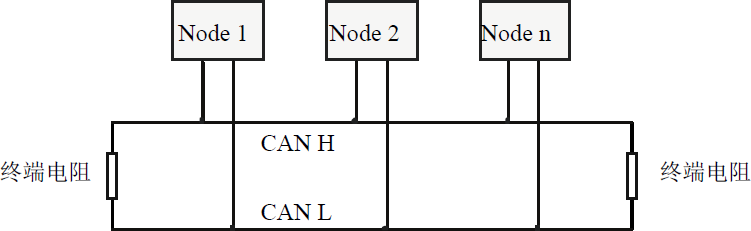 為了增強(qiáng)CAN通訊的可靠性,消除CAN總線終端信號(hào)反射干擾,CAN總線網(wǎng)絡(luò)最遠(yuǎn)的兩個(gè)端點(diǎn)通常要加入終端匹配電阻,如圖所示。終端匹配電阻的值由傳輸電纜的特性阻抗所決定。例如雙絞線的特性阻抗為120Ω,則總線上的兩個(gè)端點(diǎn)也應(yīng)集成120Ω終端電阻。如果網(wǎng)絡(luò)上其他節(jié)點(diǎn)使用不同的收發(fā)器,則終端電阻須另外計(jì)算。