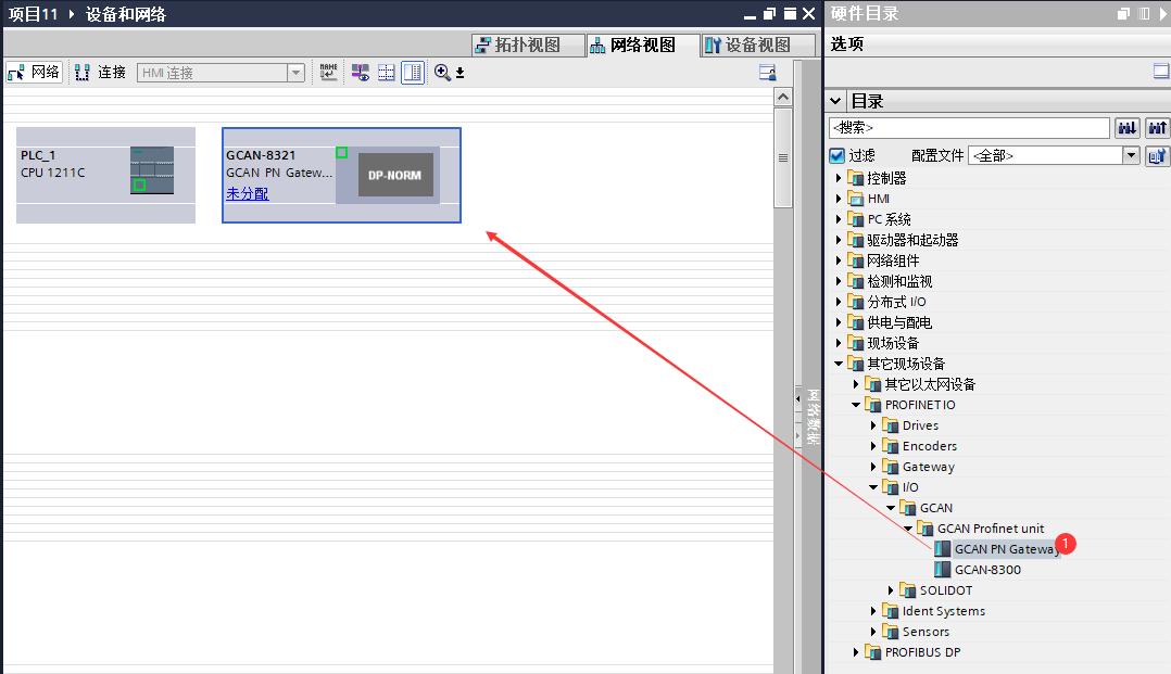 GCAN-GT-8321 Profinet網(wǎng)關(guān)與Profinet控制器連接