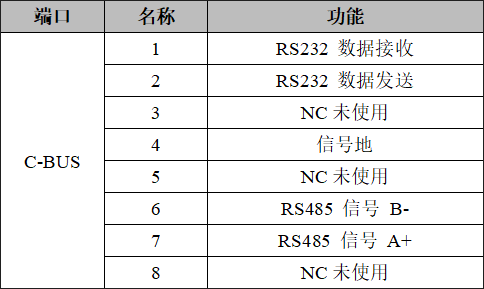 GCAN-GT-410模塊串行接口由2個(gè)4 Pin接線端子引出,可以用于連接1個(gè)RS232設(shè)備或者一個(gè)RS485設(shè)備,其接口定義如表所示。