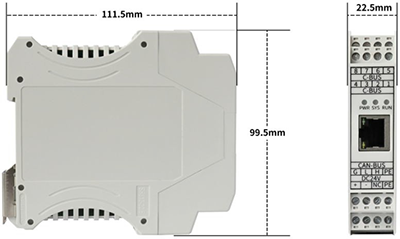設(shè)備外形尺寸:(長,含接線端子)111.5mm*(寬)99.5mm*(高)22.5mm,其示意圖如圖所示