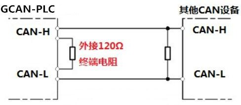 請注意:GCAN-GT-412的CAN總線內(nèi)部未集成120Ω終端電阻。如果節(jié)點數(shù)目大于2,中間節(jié)點不需要安裝120Ω的終端電阻。需要使用時,將電阻兩端分別接入CAN_H、CAN_L即可,如圖所示。