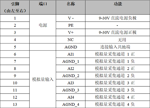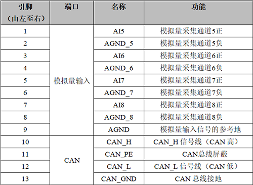 GCAN-4038模塊集成一路DC9-30V電源接口、1路標準CANopen接口、8路模擬量輸入接口。GCAN-4038模塊電源接口、4路模擬量輸入接口位置如圖所示,接口定義如表所示。