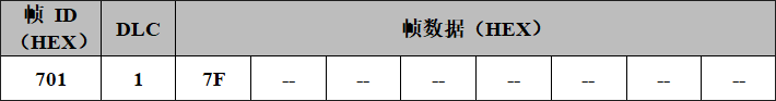 GCAN-4038模塊滿足標準CANopen CiA 301協(xié)議,是標準的CANopen從站設備。GCAN-4038啟動后將主動發(fā)出數(shù)據(jù)給主站,幀ID為0x700+Node ID。幀數(shù)據(jù)為0x7F,默認循環(huán)時間為1s(對象字典0x100C,節(jié)點守護時間)。這說明節(jié)點處于預操作狀態(tài)。