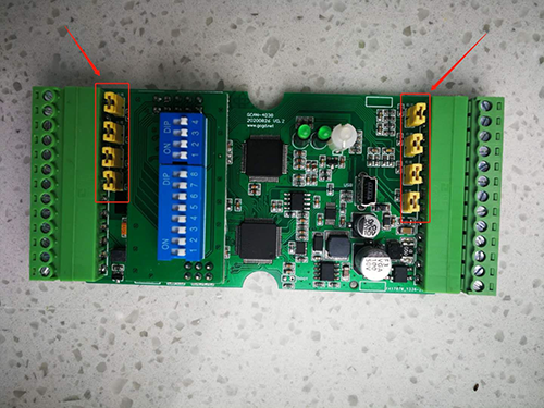 需要注意的是,-10V~+10V和-5V~+5V模式不需要接短接帽;-20mA~+20mA模式,需要將電路板的短接帽接上。如圖5.8所示。也可在購買時聯(lián)系客服提前確定模擬量采集的形式,我們會發(fā)貨前幫您接好。(注:修改完之后重新上電生效。)