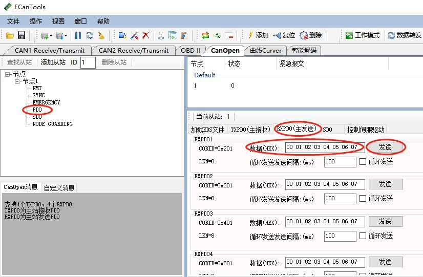 本章將使用廣成科技USBCAN-II Pro模塊及ECANTools軟件可以進(jìn)行CAN總線數(shù)據(jù)的接收與發(fā)送。軟件附帶的CANopen主站功能可以幫助調(diào)試CANopen從站,非常的方便實(shí)用。