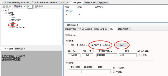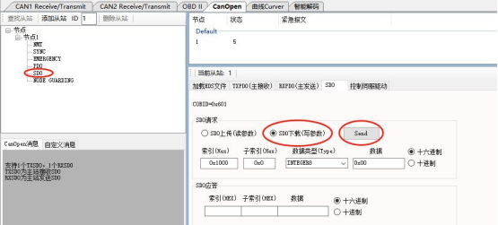 如圖所示,發(fā)送后可在ECANTools監(jiān)控界面中查看到NMT命令,且發(fā)送完NMT命令后,節(jié)點(diǎn)狀態(tài)變?yōu)?x05(操作狀態(tài))。