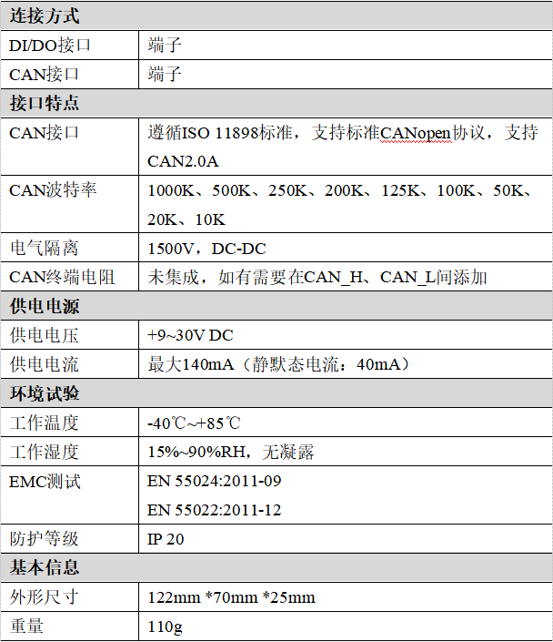 二、設(shè)備參數(shù)沈陽廣成科技GCAN-4055模塊的設(shè)備參數(shù)包括: