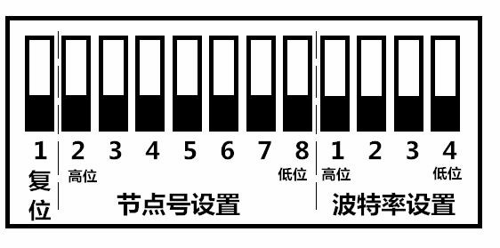 (12)使用撥碼開關(guān)配置模塊波特率及節(jié)點(diǎn)號(hào);