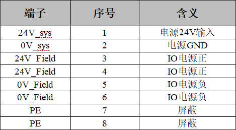 GCAN-8100 Modbus總線耦合器的接線端子排如上圖所示。GCAN-8100 Modbus總線耦合器包含8個(gè)端子,各個(gè)端子對(duì)應(yīng)的序號(hào)及其含義如下表所示。請(qǐng)注意,3號(hào)端子與4號(hào)端子之間、5號(hào)端子與6號(hào)端子之間、7號(hào)端子與8號(hào)端子之間,在模塊的內(nèi)部是相連的。