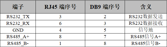 GCAN-8100 Modbus總線耦合器由總線通信模塊與供電模塊組成??偩€通信模塊上集成了一路以太網(wǎng)接口、一路RS232或RS485接口,其分別使用RJ45接口、RJ45接口、端子接口引出。RS232或RS485接口樣式如下圖所示,其接口定義如下表所示;