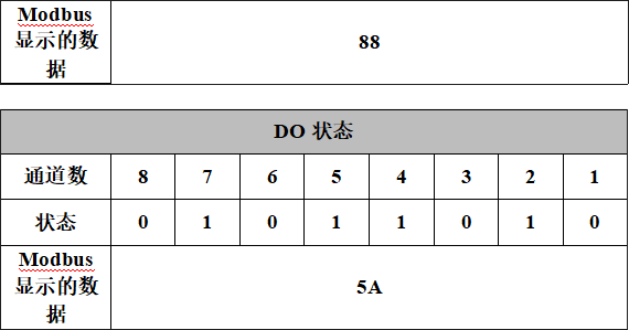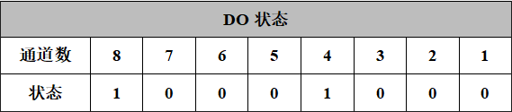 數(shù)字量輸出的狀態(tài)由一個(gè)字節(jié)來表示,通道8在高位,通道1在低位。