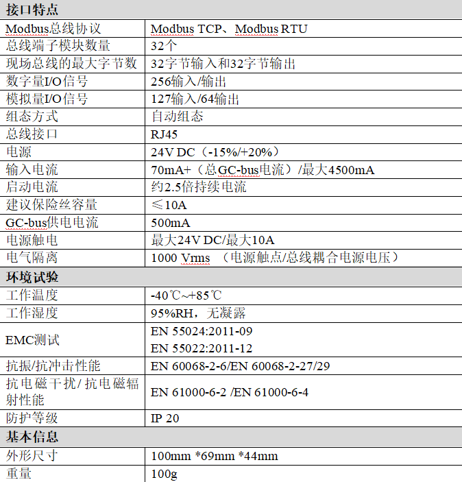沈陽(yáng)廣成科技GCAN-8100 Modbus IO總線耦合器的設(shè)備參數(shù)包括: