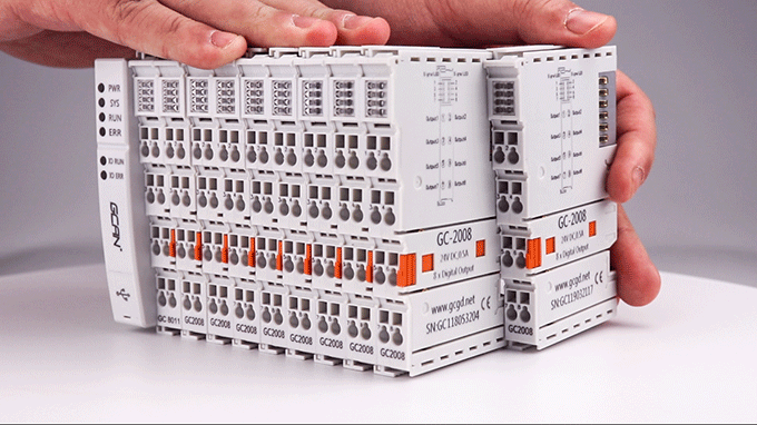 在與GCAN-PLC-400/510設(shè)備搭配使用時(shí),各種GC系列IO模塊需要按DI、DO、AI、AO順序進(jìn)行組態(tài),同類型的模塊需要放在一起。GCAN-PLC-400/510支持五種語言編程