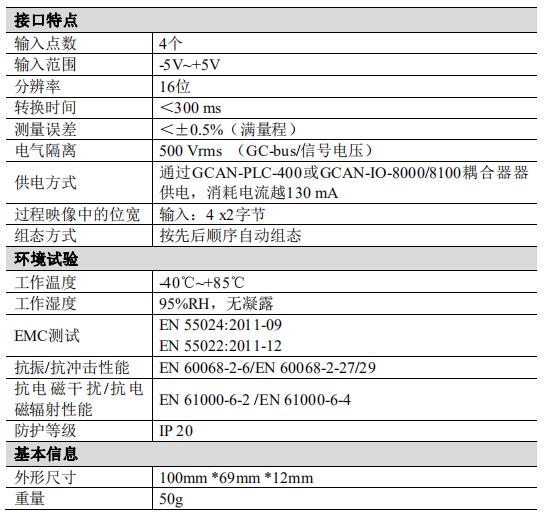 - GC-3604 模塊是集成 4 路-5V~+5V 模擬量輸入通道的 I/O 模塊。該模塊可用于實時采集模擬量信號,并將采集到的數(shù)值通過內(nèi)部總線發(fā)送給 GCAN-PLC-400或 GCAN-IO-8000/8100 系列耦合器