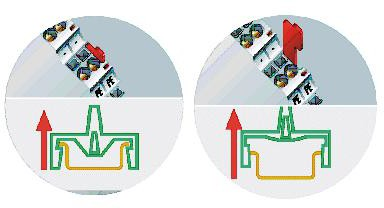 請按上圖所示,把GCAN-PLC-510安裝在導軌上,直到卡扣卡緊發(fā)出“咔”的聲音。之后您需要逆時針旋轉控制器外殼左端的橙色旋鈕,將控制器的左端牢固地固定在導軌上。GCAN-PLC-510具有自鎖機制,可有效防止設備掉落,如上圖所示。您可以拉拽橙色拉桿帶動卡扣松動后將控制器及IO模塊從導軌上取下,橙色拉桿拉動分為兩個階段,第一次拉動只是將拉桿拽出,在拉出后繼續(xù)拽動會感受到明顯的阻力,這個時候才會松動卡扣。取下控制器之前,您需要順時針旋轉控制器外殼左端的橙色旋鈕,解除鎖定狀態(tài)。