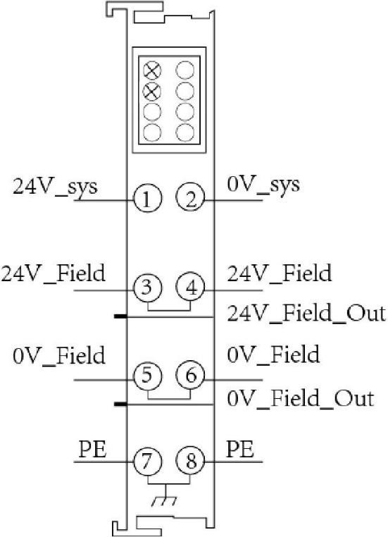 GCAN-PLC-510的電源接線端子排如下圖所示,其接口定義如下表所示。GCAN-PLC-510可編程邏輯控制器電源部分包含8個端子,需要注意的是:3號端子與4號端子之間、5號端子與6號端子之間、7號端子與8號端子之間,在模塊的內部是相連的。