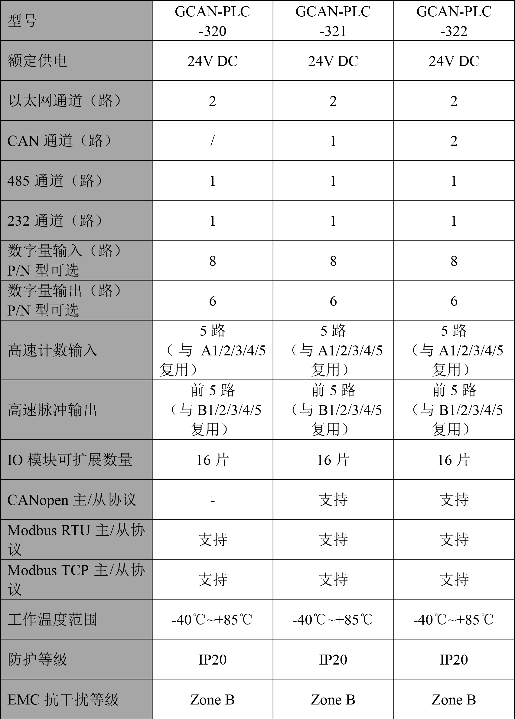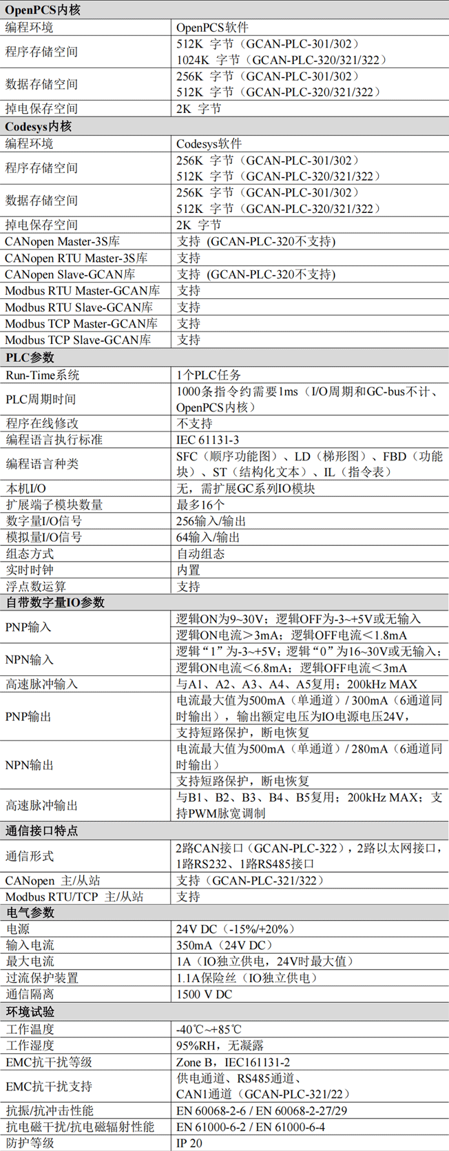 (GCAN-PLC-321/22支持)、Modbus RTU、Modbus TCP等。