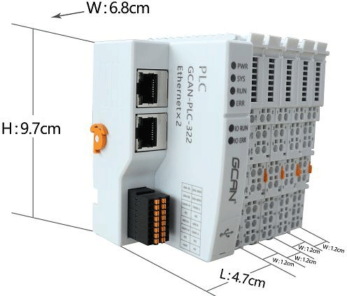 圖2.2 GCAN-PLC-322外觀尺寸圖