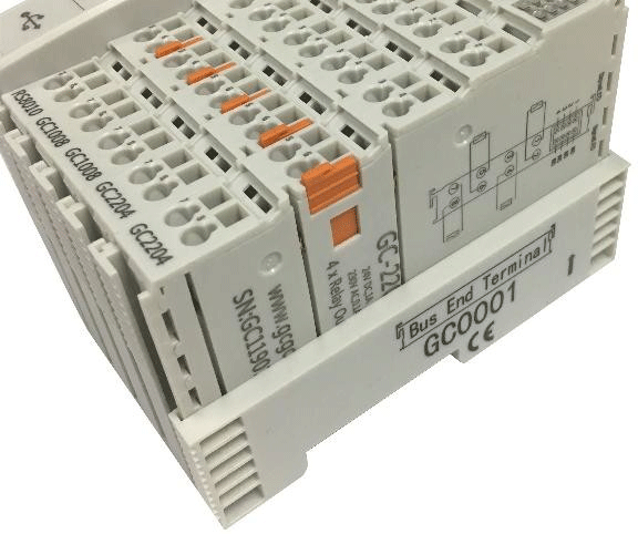 GCAN-PLC-320/321/322最多可以連接16個(gè)GC系列IO模塊。插入模塊時(shí),一定要沿著凹槽,在已有模塊的右側(cè)順次插入,直到鎖扣卡死并發(fā)出“咔”的一聲。當(dāng)您正確組裝節(jié)點(diǎn)時(shí),在端子模塊之間不會(huì)存在明顯的縫隙。如果有一個(gè)模塊未被正確組裝,整個(gè)IO系統(tǒng)將不會(huì)正常運(yùn)行。