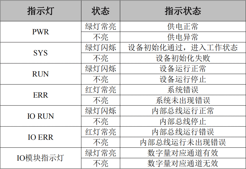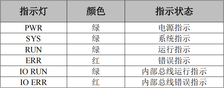 表2.3 GCAN-PLC-320/321/322指示燈定義