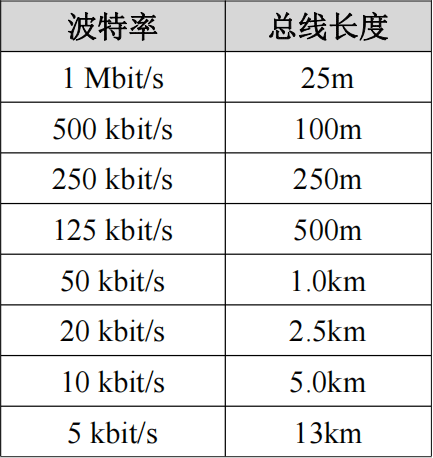 表3.1波特率與最大總線長(zhǎng)度參照表