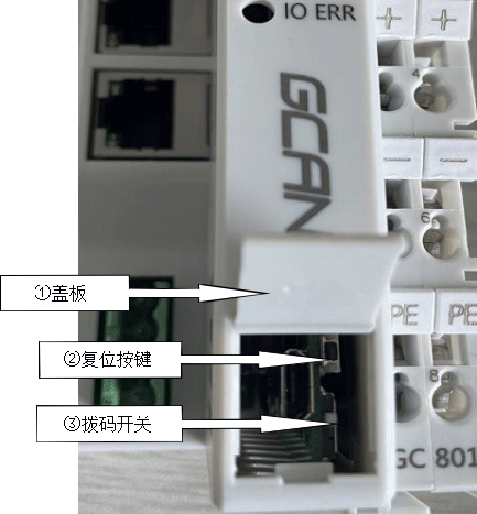 2.上電后長(zhǎng)按復(fù)位鍵到ERR燈閃爍,用于恢復(fù)PLC出廠IP地址:192.168.1.30。