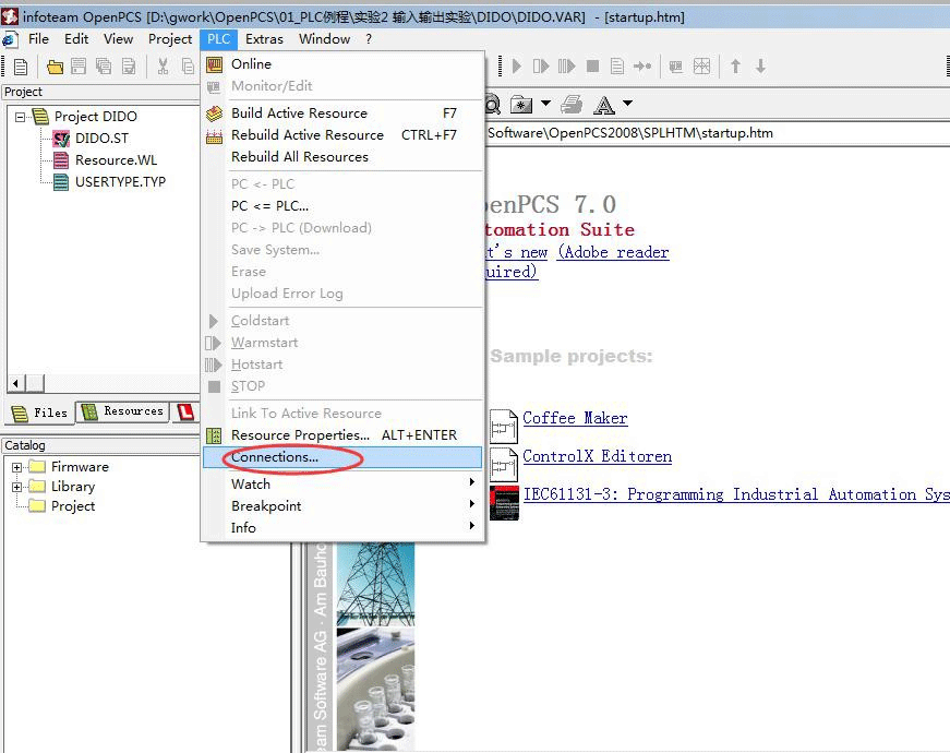 1、點(diǎn)擊PLC->Connections...(連接...)。