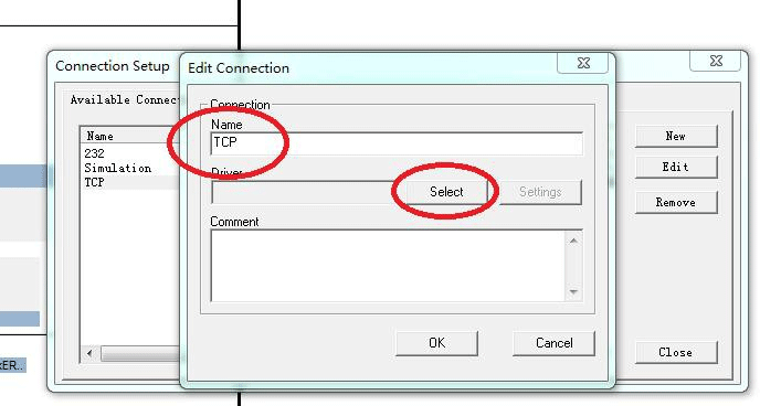 3、在Name中輸入TCP,點(diǎn)擊Select按鈕。